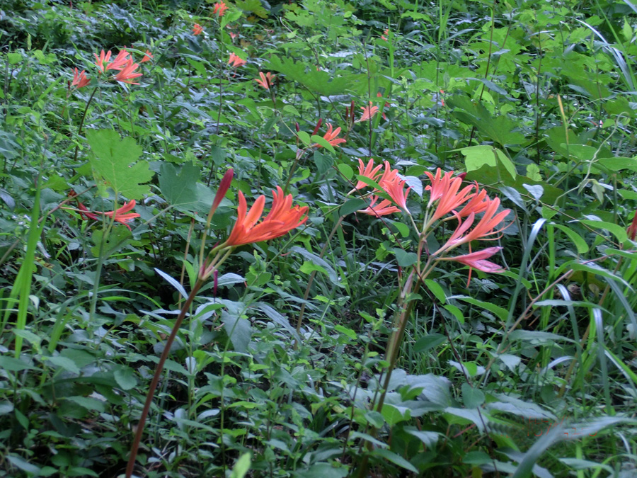 今年もキツネノカミソリが自然村の群生地でオレンジの花を沢山咲かせています。