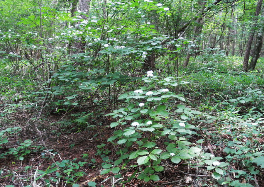 緑したたる中を第一、第二展望台を経て昼前に頂上に着きました、途中小紫陽花の群生やたつなみそう、やぶれがさ、ハコネウツギ等の山野草を見つけたりしてゆっくりと登っていきます、春蝉の蝉しぐれも迎えてくれ、頂上からの眺めは良くて遠くに日光男体山も望めました。時期がもう少し早ければゴヨウツツジ等様々なつつじが咲かせて華やかだったでしょう、頂上でお昼を食べ12時半頃下山。色々な花を見つけた楽しいハイキングでした。