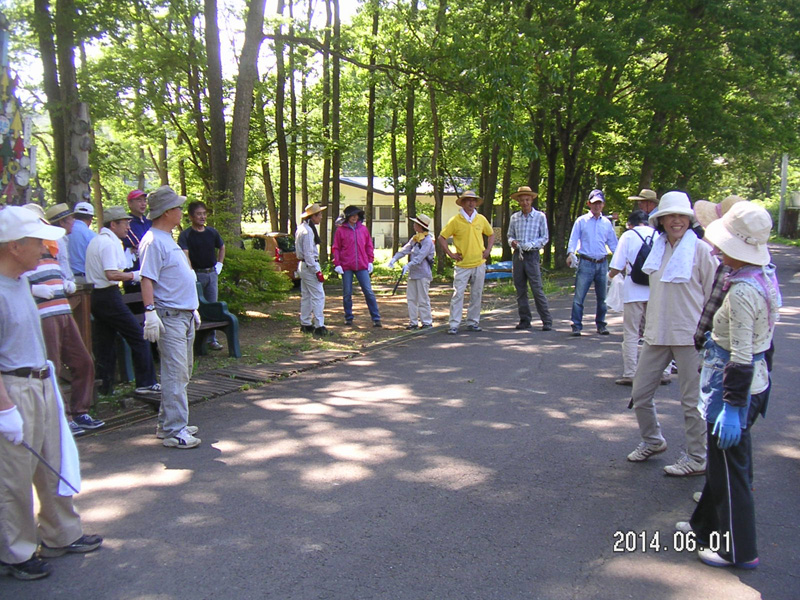 自然村は永住者を中心に毎年参加しています。昨年は6月1日の日曜日、9時30分に管理事務所前に24人が集合。4班に分かれ自然村を出発、自然村を取り巻く道路を中心に1時間半近くかけてゴミ拾い。 終了後は管理事務所用意の冷たい飲み物で和気あいあいの雑談タイムとなりました。
