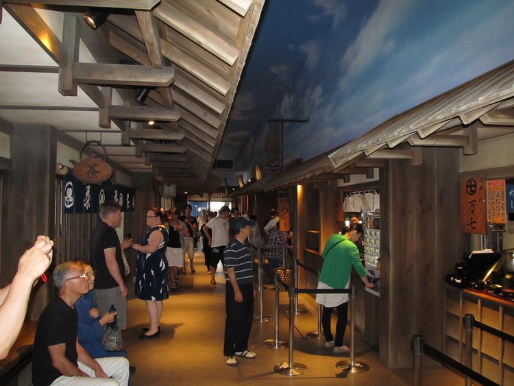 那須から東京へ向かい利根川を渡ると、羽生PAに今話題の「鬼平江戸処」が。昨年暮れにオープンし、江戸の世界にタイムスリップした食べ物屋とお土産屋さんが並んでいます。お店は「軍鶏鍋」「江戸めし」「うなぎ」「蕎麦」「くず餅」など9店舗で、いずれも東京の老舗の名店がズラリ、何を食べていいか迷ってしまいそうなところです。