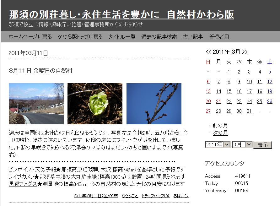 これから独り言です。そうかー、3.11アーカイブスは早めにやる手があるんだ!写真は地震6時間前の投稿だ。これをつかおうか、同じ金曜日だし。んんんん何か考えてみよう。土曜は鈴木さんでつながるし!さ、寝るか(笑)