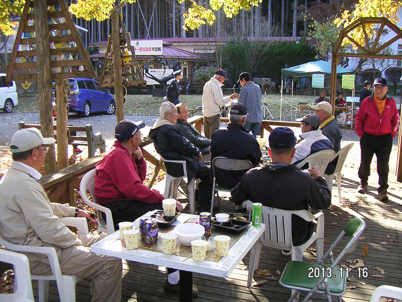 2年振りに秋の自然村祭が "新そば祭り"として16日(土)に催されました。 そば打ち同好会の方たちのそば打ちの実演販売をはじめ、きのこ汁.焼き鳥.おむすび等を食べ、ビールや焼酎を片手に歓談するという姿が見られました。