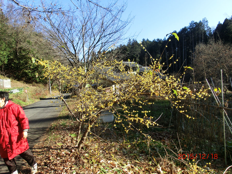 自然村からアイランドゴルフリゾートに行く途中の民家の庭に蝋梅の花が満開になっていました。例年ですと1月に花が咲くのに今年は暖かいからでしょうか。当家の奥さんは早咲き種かしら?と言って花を分けてくれました。